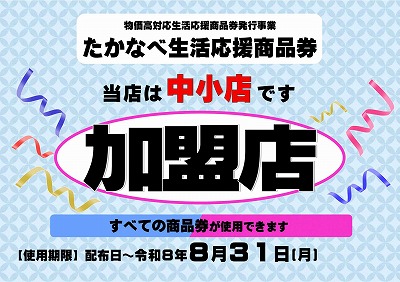 物価高対応生活応援商品券発行事業(たかなべ生活応援商品券)について