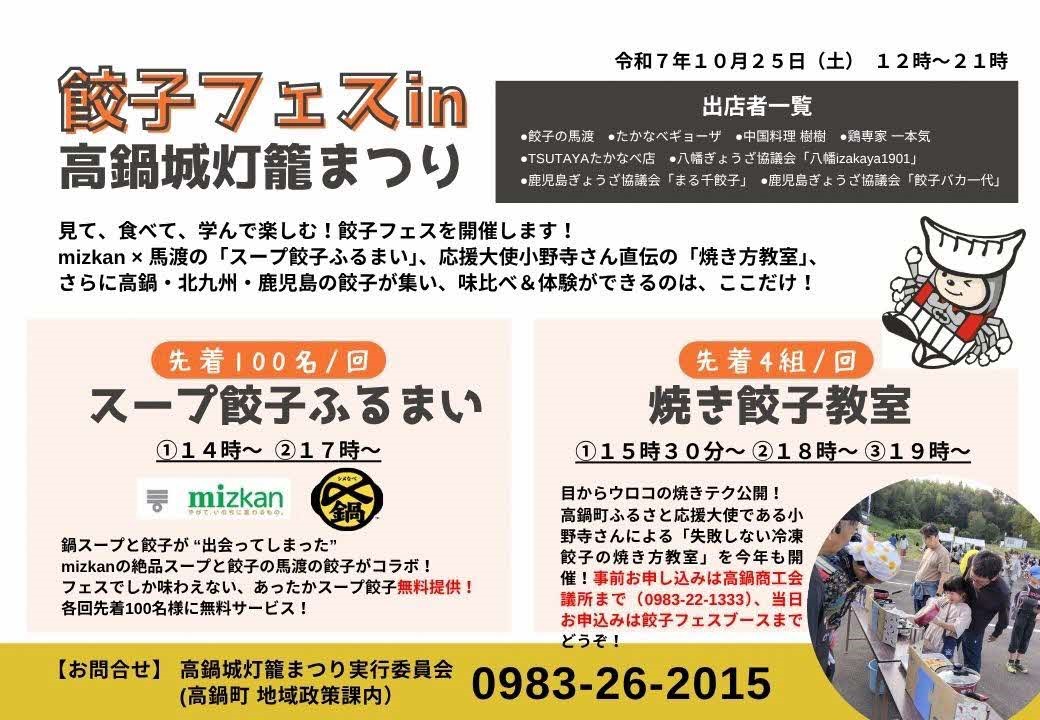 第25回高鍋城灯籠まつりでは今年も「餃子フェス」が開催されます!