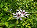 春から初夏にかけて花を咲かせるキンポウゲ科のつる性植物です。花は大きく、白や淡い紫色で、花弁のように見える萼片が美しく広がります。名前の「カザグルマ」は、花の形が風車に似ていることに由来しています。