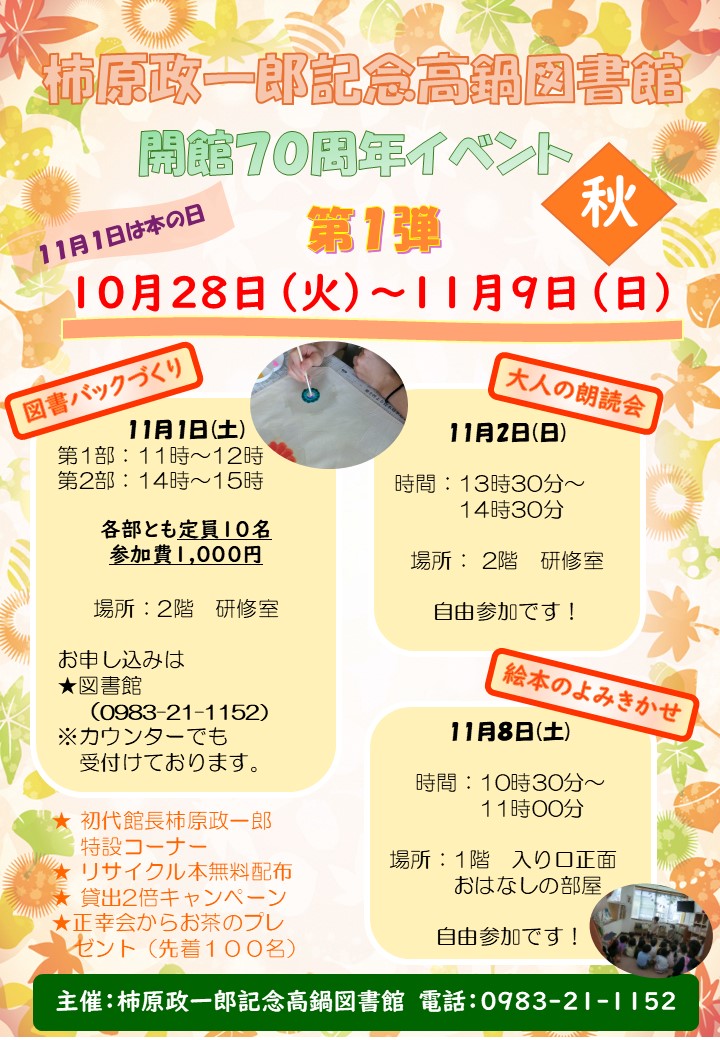 柿原政一郎記念高鍋図書館開館70周年記念イベント【第1弾】について